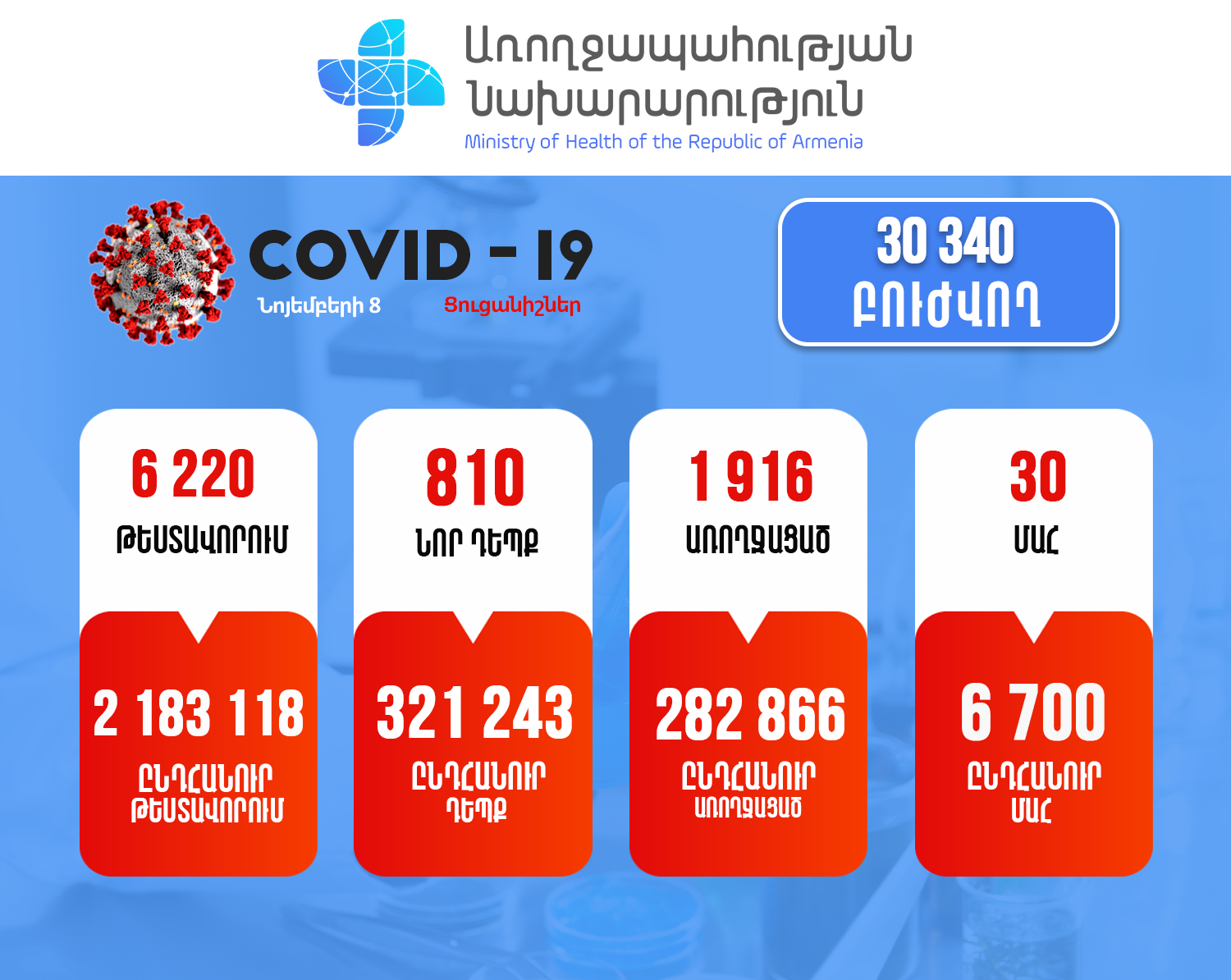 COVID-19. Նոյեմբերի 8-ի` ժամը 11:00-ի դրությամբ,