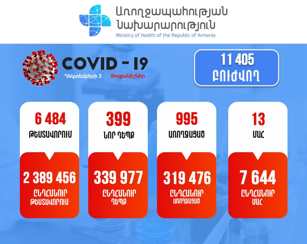 Դեկտեմբերի 3-ի` ժամը 11:00-ի դրությամբ,