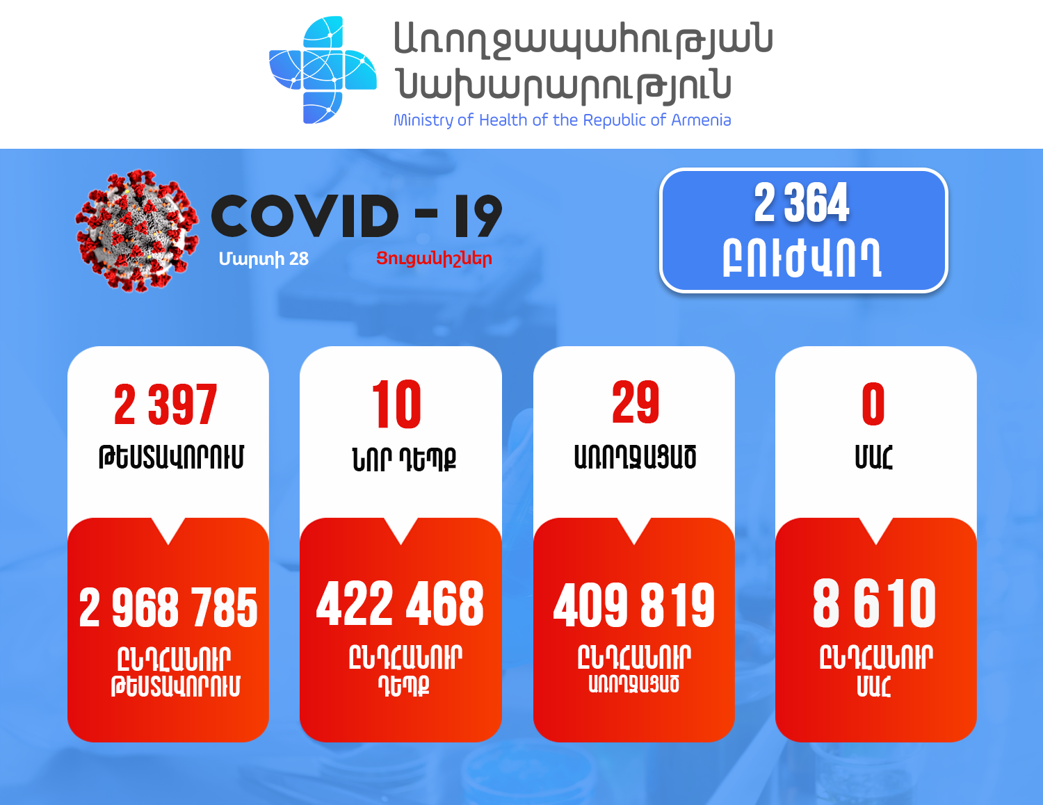 Մարտի 28-ի` ժամը 11:00-ի դրությամբ,