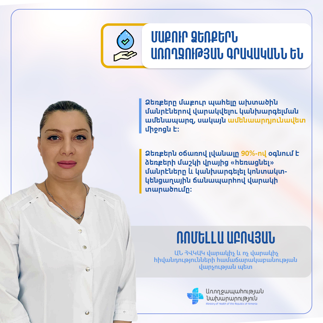 ►Ձեռքերը սրբել մաքուր մեկանգամյա սրբիչով: