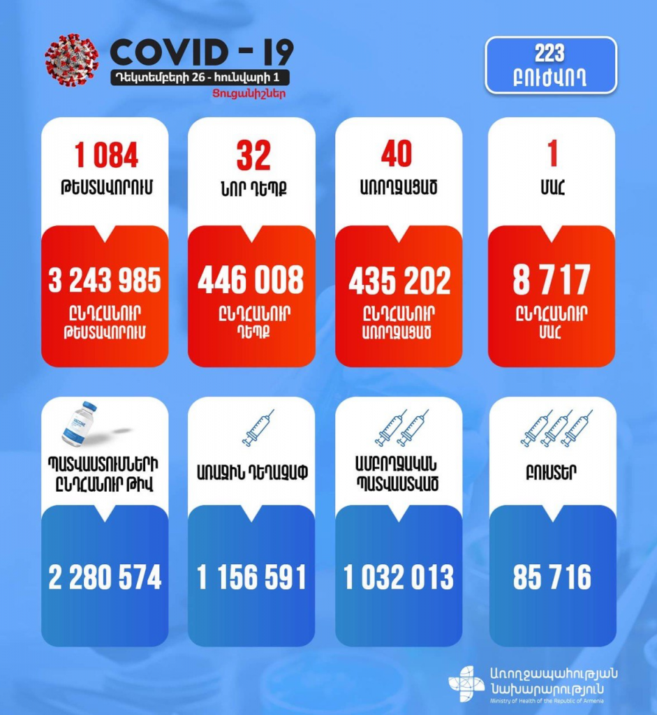 COVID-19 իրավիճակը հունվարի 1-ի դրությամբ