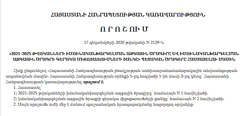 2021-2025 թվականների իմունականխարգելման ազգային ծրագիր